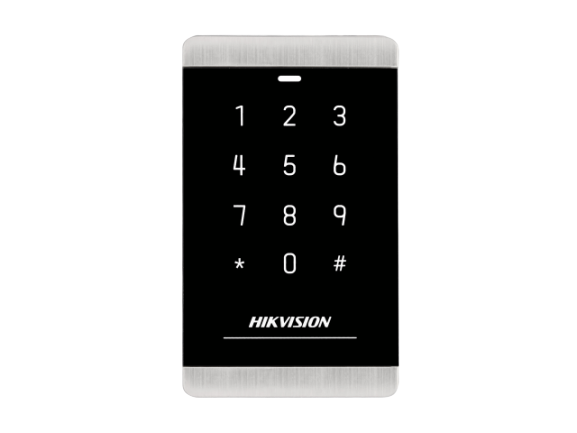 Считыватель карт Mifare Hikvision DS-K1103MK поставляется в корпусе, отвечающем требованиям стандарта защиты от влаги и пыли IP64, диапазон рабочих температур составляет -40 °C… +70 °C, что в совокупности обеспечивает стабильную работу устройства на улице. Дистанция считывания — 30–50 мм, рабочая частота — 13.56 МГц. Модель базируется на 32-битном процессоре 1 ГГц, укомплектована сенсорной клавиатурой на 12 клавиш, LED индикатором (питание, статус соединения, итог идентификации), встроенным бипером, тампером. Предусмотрена функция самодиагностики и устранения ошибок посредством отката до состояния, предшествующего обновлению. Интерфейсы: Wiegand 26/34, RS-485. Питание — DC 12 В, рабочий ток — максимум 0.5 А. При пиковых нагрузках считыватель потребляет не более 6 Вт. Габариты — 129.076.014.7 мм, вес — 150 г. Сертификация — CE, FCC. Накладная установка.
