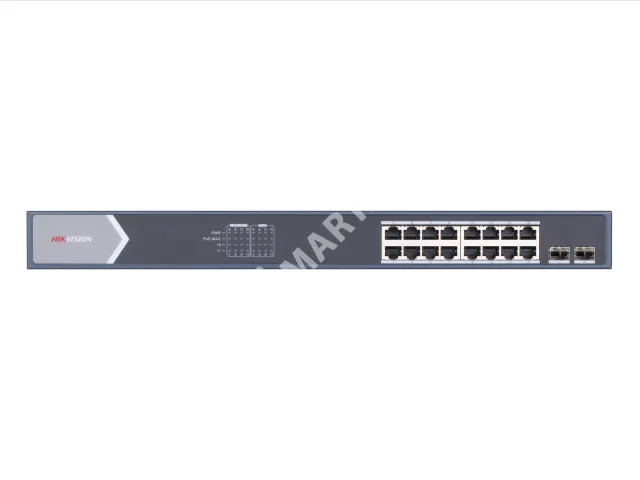 Hikvision DS-3E0520HP-E - Неуправляемый промышленный РоЕ-коммутатор оснащен гигабитными двенадцатью RJ-45 с поддержкой РоЕ, четырьмя RJ-45 с поддержкой Hi-PoE, двумя Uplink-портами RJ-45, двумя SFP-слотами для работы в волоконно-оптической сети.