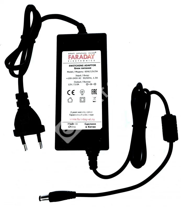 вход 100-240 В, выход 12 В, 60 Вт, 5 А, автоматическая защита от КЗ и перегрузки
