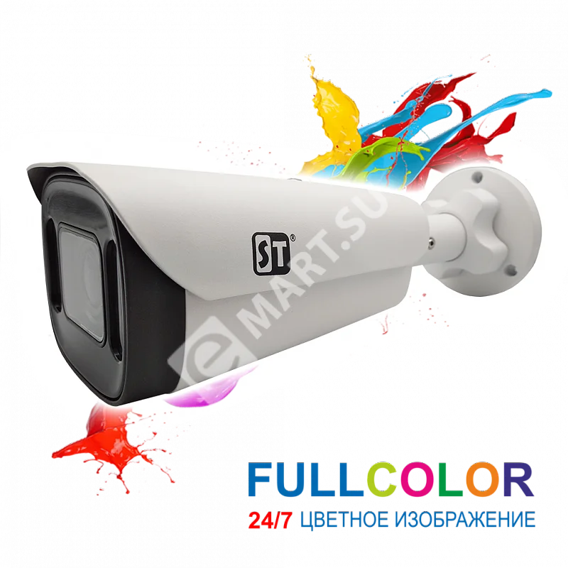 Space Technology ST-S2125 PRO FULLCOLOR (2.8-12 мм) - Видеокамера-цилиндр поставляется с 2.8-12 мм объективом, ее поле зрения может меняться от 30 до 110 градусов. Корпус выполнен из металла, смарт-LED-подсветка на четырех светодиодах имеет дальность 35 метров. Разрешение: 2,1MP/960H, уличная 4 в 1(4 режима работы: AHD/TVI/CVI/CVBS). Сенсор: 1/2,9" Progressive Scan CMOS. Дальность ИК подсветки: до 35 м, 4 LED (3500К). Светочувствительность (мин. освещение): 0,1 Lux с LED (белый свет). Электронный затвор: 1/25-1/50000 сек.