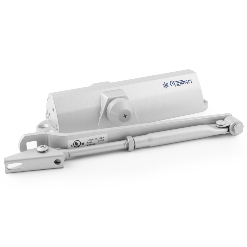 Универсальный дверной доводчик для дверей левого и правого открывания. Предназначен для установки на межкомнатные и входные двери весом от 25 до 120 кг. Скорость закрывания двери регулируется при установке в двух диапазонах при помощи винтов на корпусе доводчика. Данная модель разработана с учетом эксплуатации в российских условиях. Диапазон рабочей температуры от -30° до +45°С.