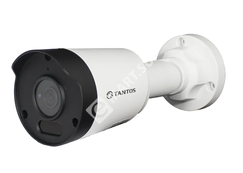 Tantos TSi-Pe50FPN - IP видеокамера уличная цилиндрическая с LED подсветкой белого цвета, пятимегапиксельная, 2880 x 1620, 30к/с, 1/2.8” CMOS сенсор, 0.003 Люкс (день) / 0 Люкс (с LED подсветкой), встроенная видеоаналитика, BLC, WDR, DWDR, DNR, ROI, антитуман, Н.264+/H.265+, FTP, объектив 2.8 мм, DC 12V, PoE, встроенный микрофон, microSD до 128Гб, герметичный разъем Ethernet, подсветка белого цвета до 30м, -40+60˚C