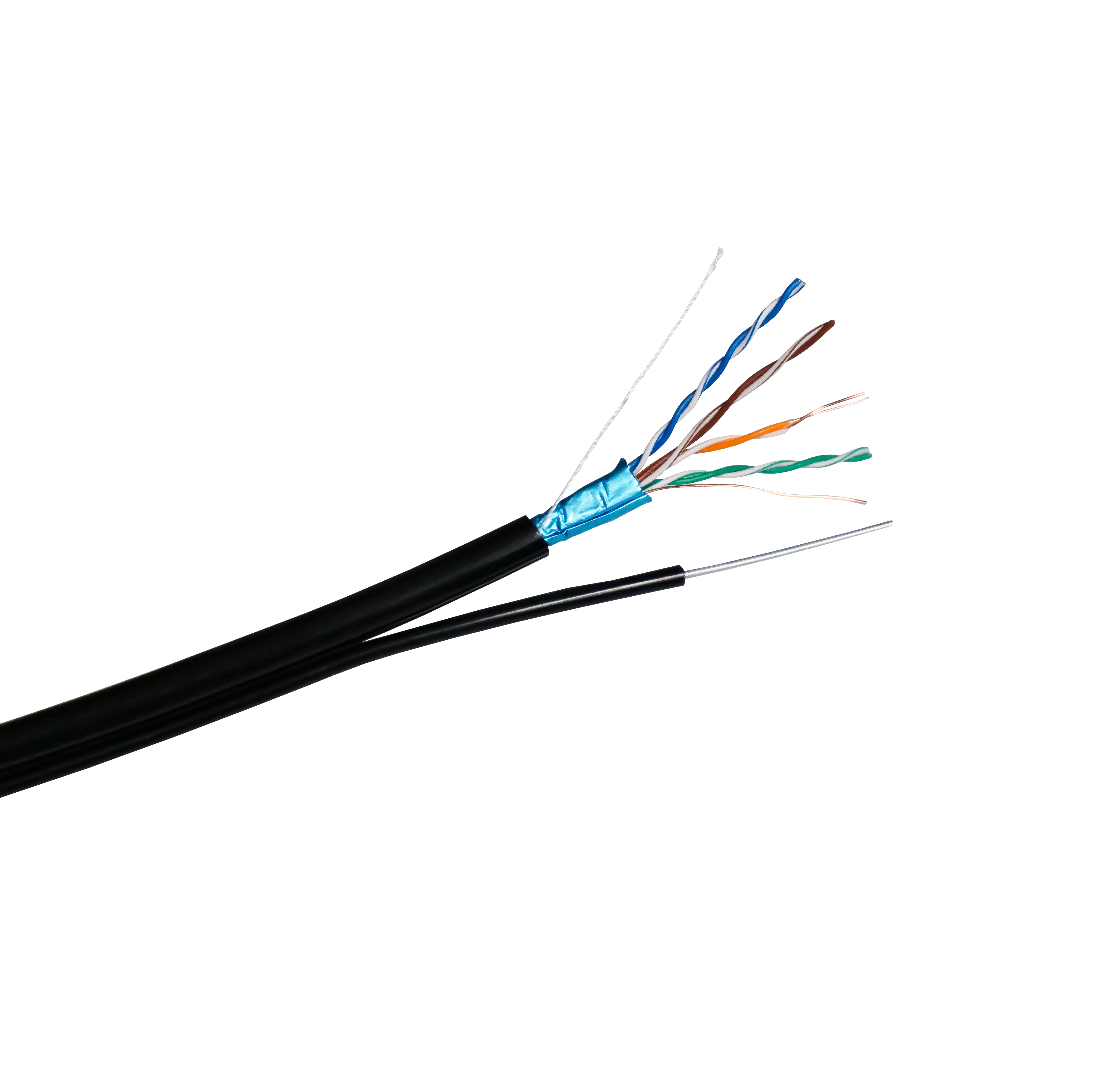 Кабель FTP CAT 5E CU 4x2x0,50 CU PE ВНЕШНИЙ С ТРОСОМ (МЕДНЫЙ), FLUKE TEST,Витая пара, бухта 305 м,Стальной одножильный трос, материал троса – сталь, диаметром 1,15мм, Категория:5,5е при напряжении 48 вольт,FTP,Количество пар:4,Материал проводников:медь,Тип проводников:одножильный,Изоляция:Полиэтилен (PE).d внешней изоляции кабеля 6,3 мм.Цвет:черный,Экран:алюминиевая фольга, Диаметр проводников:0,5мм, Температура эксплуатации: эксплуатация -50…+60°С, монтаж не ниже -10°С