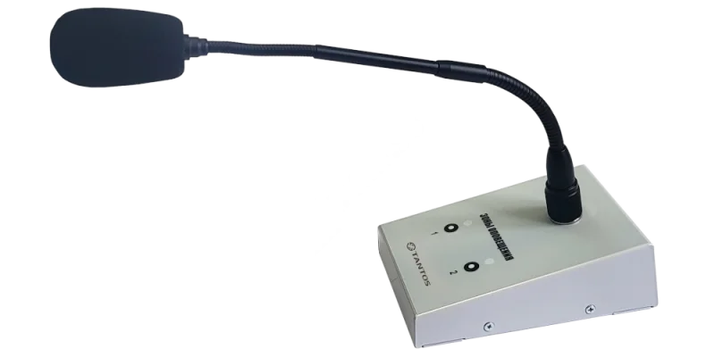 Выносной пульт управления предназначен для удаленной передачи речевых сообщений в составе системы оповещения на базе моноблока TSo-M120F, управление 2-мя зонами оповещения
