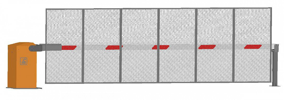 Имеет антивандальное исполнение, стрела выполнена из алюминиевой профильной трубы сечением 120х60мм с закрепленным на ней забором из алюминиевого ПВЛ листа. входит в комплект