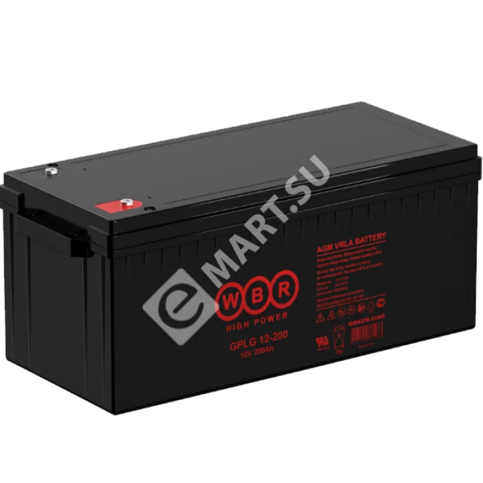 WBR GPLG12-200 - герметизированные, выполненные по гелевой (GEL) технологии, свинцово-кислотные аккумуляторные батареи общего применения со сроком службы 12 лет в буферном режиме или более 350 циклов заряда-разряда в циклическом режиме при 100% разряде. Эти высокоэффективные перезаряжаемые батареи не требуют обслуживания в течение всего срока службы. Основные области применения: источники бесперебойного питания (UPS), охранные и пожарные системы безопасности, оборудование телекоммуникации и электросвязи, аварийное освещение, телеметрическое, контрольное и другое оборудование.