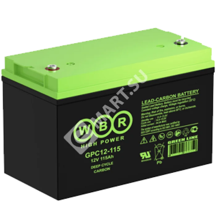 Аккумулятор WBR GPC12-115-2 - герметизированная, карбоновая, свинцово кислотная, аккумуляторная батарея со сроком службы до 15 лет сроком службы или более 1900 расчетных циклов заряда-разряда в циклическом режиме при 70% разряде. Эти высокоэффективные перезаряжаемые батареи не требуют обслуживания в течение всего срока службы и за счет использования чистого свинца, а также добавки углерода в состав электродов получили улучшенные зарядные и разрядные характеристики.