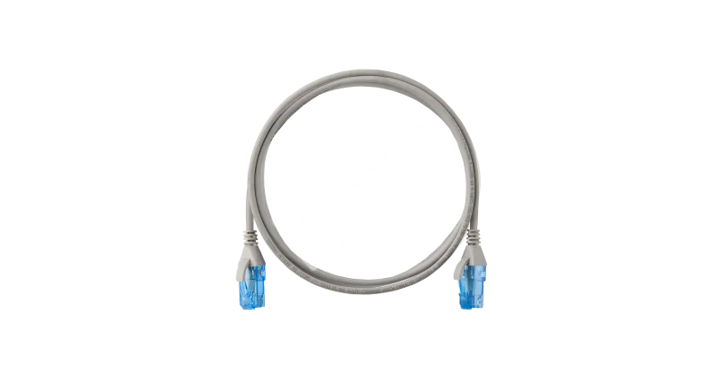 Коммутационный шнур NIKOMAX Slim Line U/UTP 4 пары, Кат.6 (Класс E), 250МГц, 2хRJ45/8P8C, T568B, заливной, с защитой защелки, многожильный, BC (чистая медь), 28AWG (7х0,127мм), LSZH нг(А)-HFLTx, серый, 1м