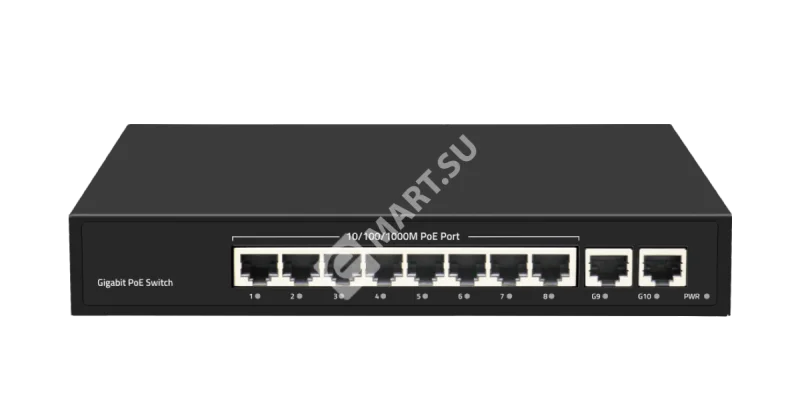 Неуправляемый коммутатор PoE NIKOMAX, 8*10/100/1000 Мбит/с PoE (802.3af/at), 2*1000 Мбит/с Base-T, 120Вт