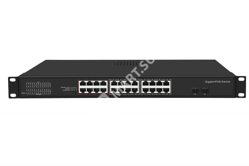 Неуправляемый коммутатор PoE NIKOMAX, 24*10/100/1000 Мбит/с PoE (802.3af/at), 17-24 порт до 250 метров cat6, 2*1000 Мбит/с SFP, VLAN, 400Вт