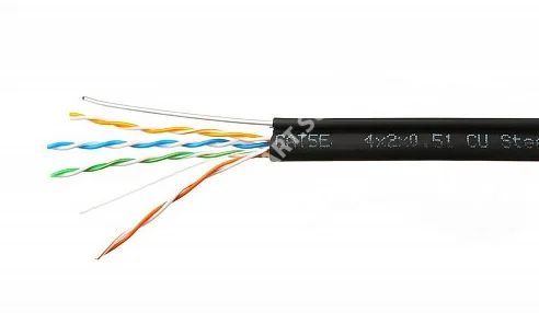 Кабель витая пара UTP 4 применяется в системах СКС для внешней прокладки. Предназначены для использования в высокоскоростных системах передачи данных со скоростью до 1Гбит/с. Кабель соответствует стандартам ANSI\TIA\EIA-568-B.2 Проходит Fluke тест на 100м Огнестойкость: UL VW-1, IEC-332.1 Арамидная нить позволяет легко удалять оболочку кабеля на необходимую длину. Технические характеристики: Проводник, d: медь (Cu), 24 AWG, одножильный Внешний d кабеля: 5,8 мм± 0,2мм Тип и цвет оболочки кабеля: PE черный Применение: для наружных работ Трос: 1,2 мм, стальной Бухта: 305 м Кабель поставляется на катушке Проходит Fluke тест на 100 метрах Относительная скорость распространения сигнала (NVP): 72% Диапазон частот: 1-100 МГц Волновое сопротивление, Ом: 100 + -15 Дисбаланс сопротивления 5% Диапазон температур °С: Хранение: от -40 до +60 Прокладка: от 0 до +60 (при этом до
