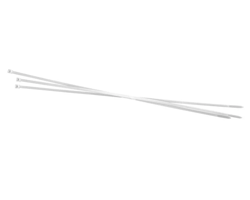 Допускается отклонение в размерах в пределах +/-3% Длина: 450мм Ширина: 4,8мм Прочность на разрыв (кг): 22 Упаковка: 100 шт. Цвет: белый Диапазон температур: эксплуатация от -35С до +85 С хранение от 0С до +40 С, при влажности от 50 до 70% (перед началом монтажа стяжки должны находиться в таких же условиях не менее 24 часов) Стяжки должны храниться вдали от обогревательных и отопительных приборов. рекомендуемая температура монтажа от +5С до +50 С Диаметр обхвата проводов и кабелей: от 3 до 130 мм Материал: нейлон 66 Замковый механизм одностороннего хода. Неразъемный