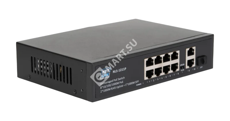 Коммутатор NETLAN, неуправляемый, 8*10/100/1000Мбит/с PoE (af/at), 2*10/100/1000Мбит/с RJ45, 1*100/1000Мбит/с SFP, DC52V/2.3A, PoE бюджет 120W