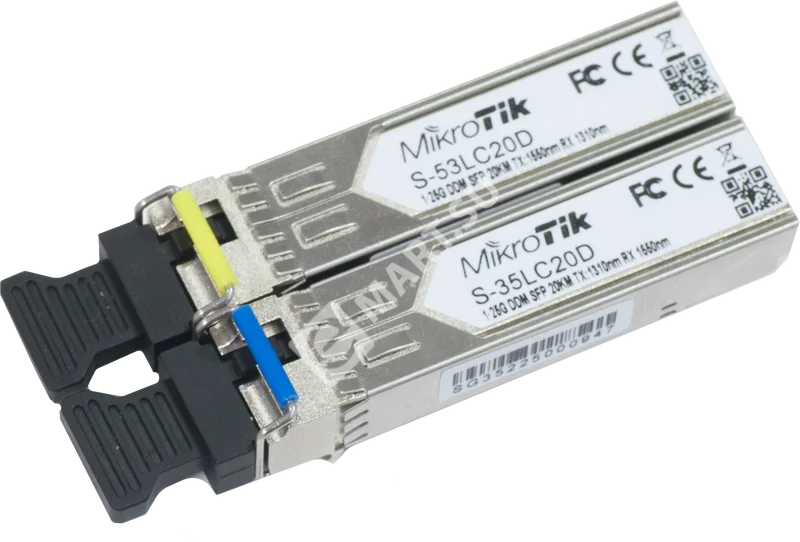 S-35/53LC20D это два SFP трансивера. S-35LC20D является 1.25G одномодовым оптическим модулем SFP с разъемом LC, T1310nm/R1550nm, который предназначен для работы до 20 км с поддержкой DDM. S-53LC20D является 1.25G одномодовым оптическим модулем SFP с разъемом LC, T1550nm/R1310nm, который предназначен для работы до 20 км с поддержкой DDM.