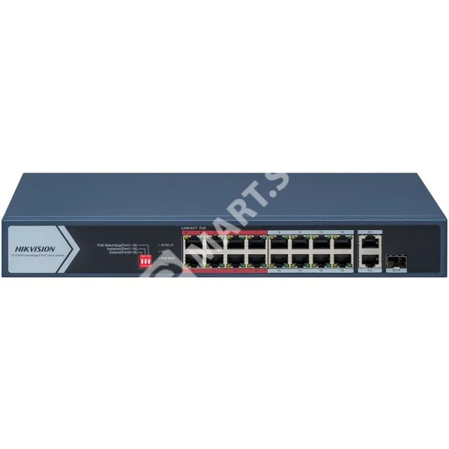 Управляемый PoE-коммутатор Hikvision DS-3E0318P-E/M(C) с 16 портами PoE и увеличенной дальностью передачи